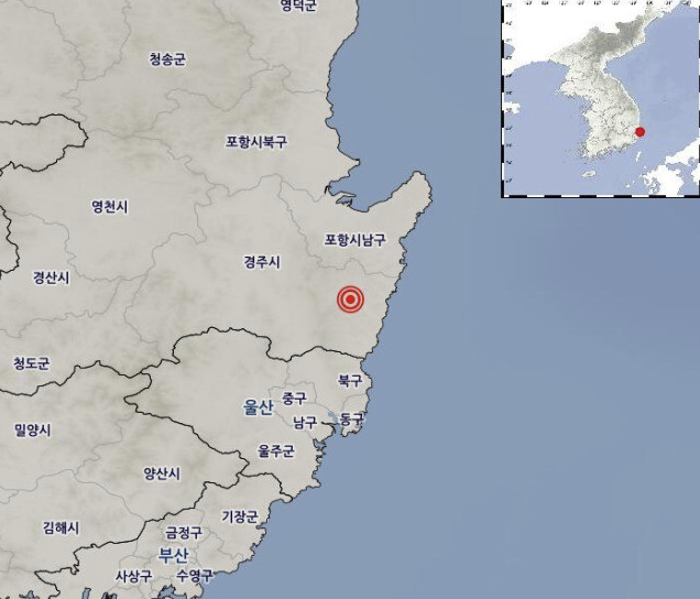 지진 진앙은 북위 35.79도, 동경 129.42도. 지진 발생 깊이는 12㎞이다.